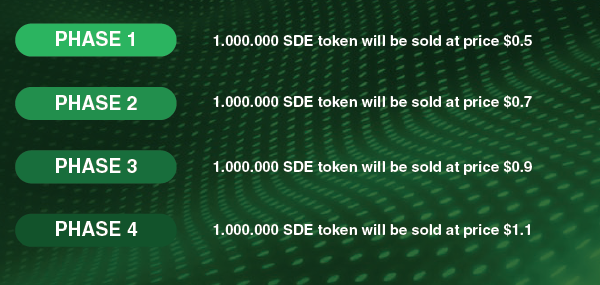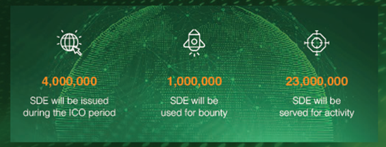 4 million SDEs will be issued during the ICO period. One million other SDEs will be used for bounty. The remaining 23 million SDE will be served for the activity.